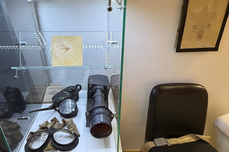 Во «взлётной полосе искусства» эта мысль «красной нитью» проходит через всю экспозицию: от окаменевшей стрекозы и скульптурного образа фантастической стрекозы до носа Ту‑134, двери самолёта, кресла бомбардировщика, серебряного знака с дирижаблем и архивных фотографий — как путь от первого живого полёта к сложным воздушным машинам и дальше, к «судам настроения», которые теперь конструирует художник.