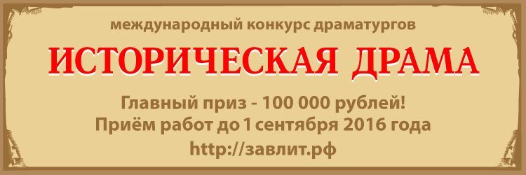 Страна проживания, возраст и профессия значения не имеют. «Историческая драма» проводится с целью поиска интересной современной пьесы или инсценировки, посвященной исторической теме, для постановки ее на сцене Калининградского драматического театра.