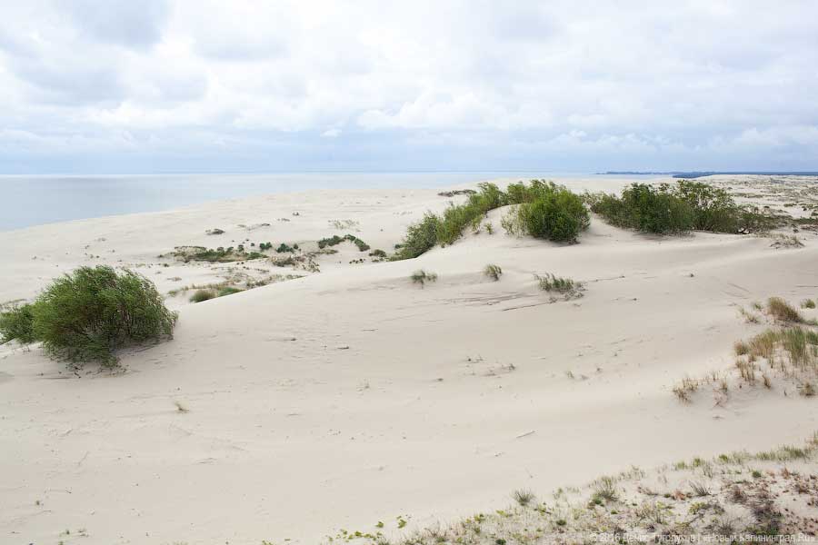 Заповедная зона закрыта для туристов; там, где начинается песок, ходить нельзя, но многим все равно хочется посмотреть с дюн на залив или скатиться к нему. Инспектор поднимается на горку и смотрит в бинокль. Следов нет — значит, никто не ходил. Как только мы отъезжаем от Эфы, инспектору звонят и говорят, что по дюнам