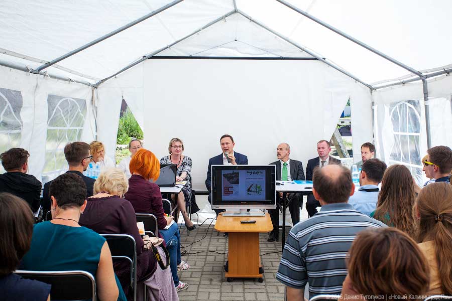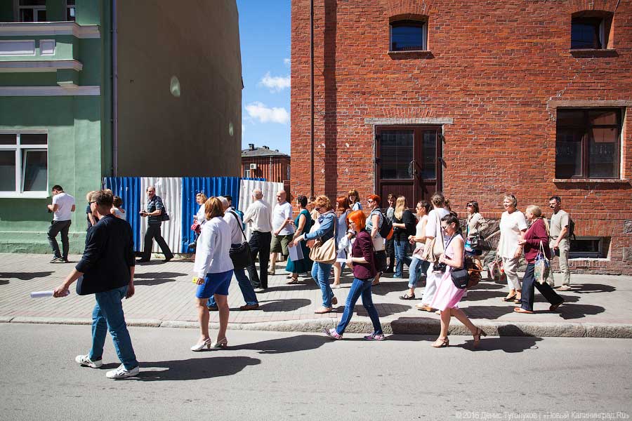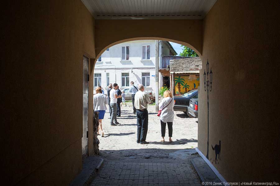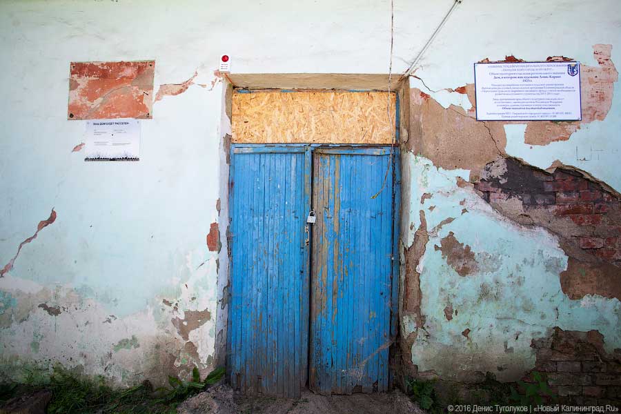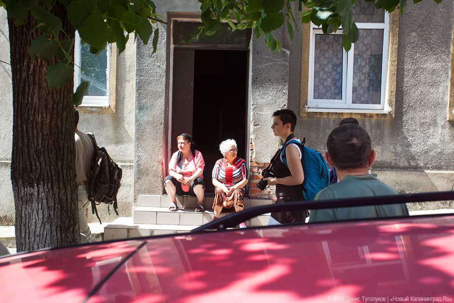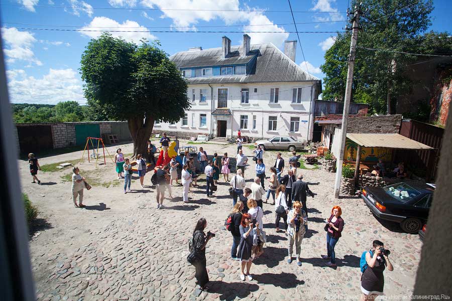 Из ближайших домов выходят местные жители. Они слушают торжественные речи, подходят поближе, чтобы рассмотреть пленерные работы студентов и открытки из Восточной Пруссии. На высказывание, что все это только начало большого пути и, возможно, при найденном финансировании, аварийный дом станет настоящим музеем, женщина в цветастом халате и домашних тапочках бормочет, что побыстрее бы, и идет к подъезду кормить кота.
