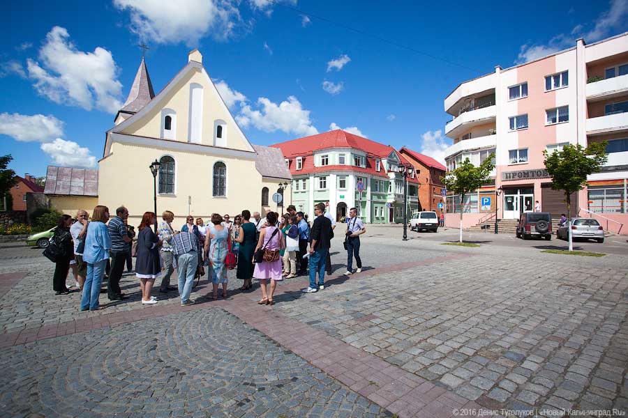На центральной площади детский пленер: с десяток детей из ДЮЦа сидят за мольбертами и старательно перерисовывают кирху, которую теперь правильно называть православным храмом. Ловис Коринт подарил кирхе несколько картин, посвященных библейской тематике. Некоторые из них, в том числе и «Возложение Христа во гроб», погибли во время Первой мировой войны. В
