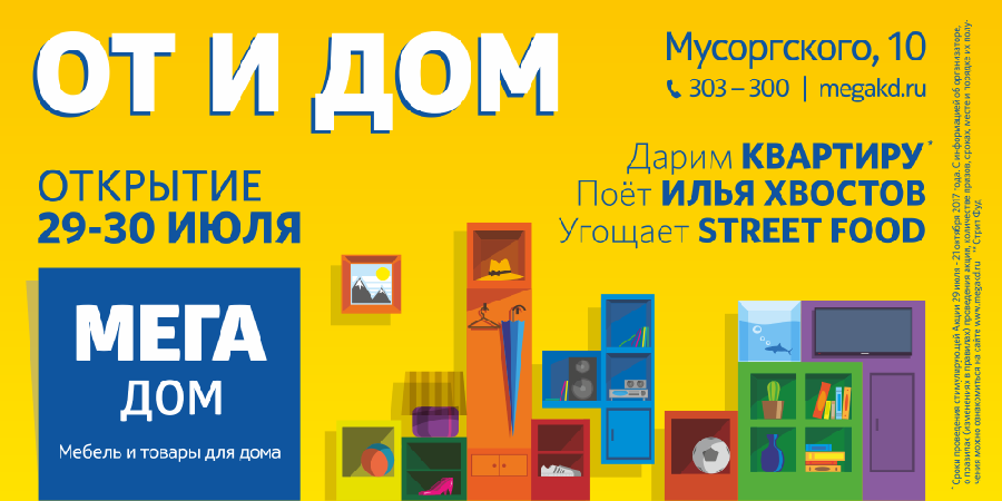 29-30 июля состоится праздничное открытие мебельного торгового центра «Мега Дом». Организаторы праздника готовят для гостей множество развлечений и приятных сюрпризов. Не пропустите!
