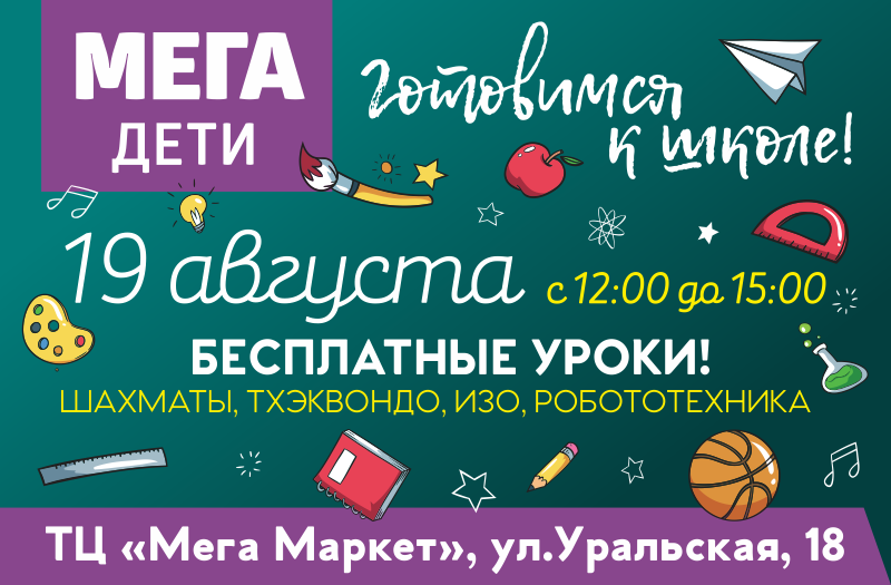 19 августа на детской площадке торгового комплекса «Мега» пройдёт серия мероприятий в преддверии начала школьного сезона. Бесплатные уроки по робототехнике, шахматам и физическим опытам — ребята смогут попробовать себя в различных направлениях и даже записаться на полноценные курсы. Организаторы приглашают на мероприятие детей от двух до 15 лет — занятие по душе найдёт каждый!