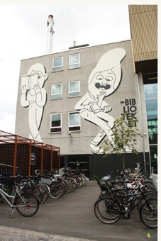 На контрасте в тот же день была посещена библиотека, расположенная в одном из неблагополучных районов Копенгагена. Внутри и снаружи здание украсили граффити известного в Дании и в других странах уличного художника HuskMitNavn, псевдоним которого переводится с датского как «помни мое имя». Граффитчики не раскрывают своих настоящих имен, так как их самовыражение преследуется законом.