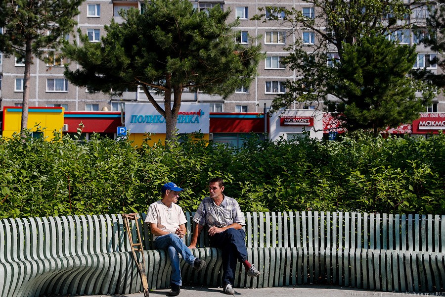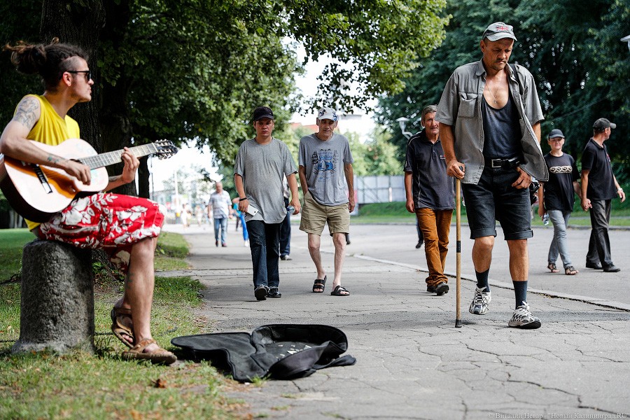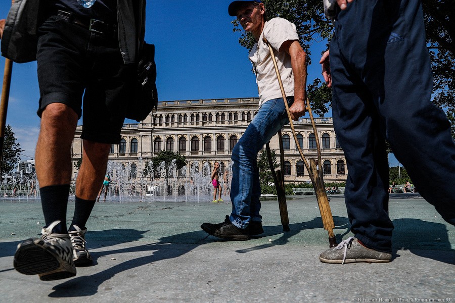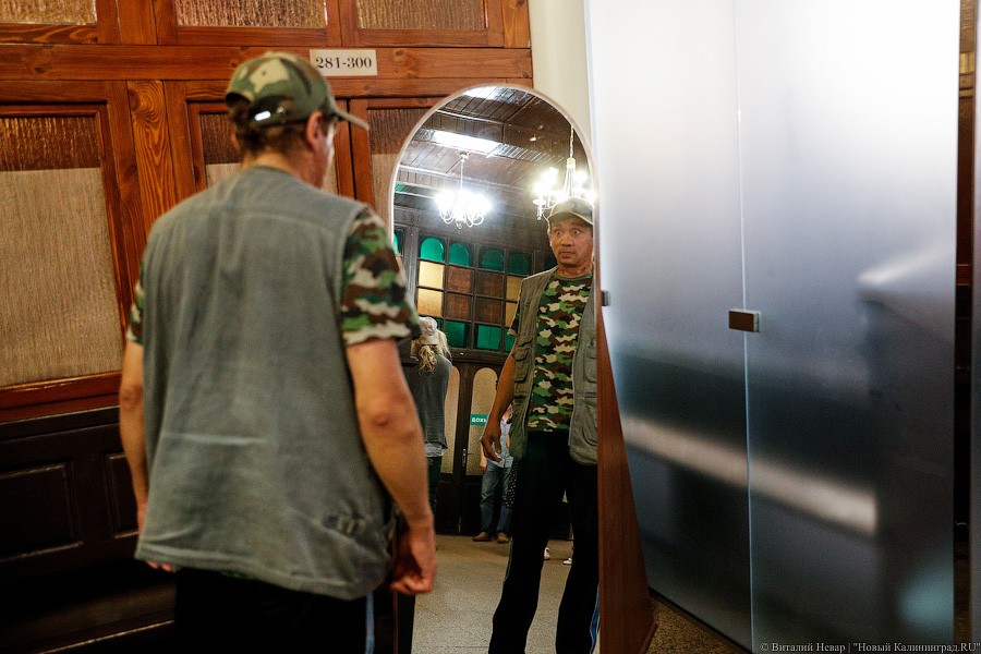 Старт экскурсии от Дома ночного пребывания в микрорайоне Космодемьянского — оттуда едет основная группа, еще несколько желающих присоединятся в центре Калининграда. Дом — это двухэтажное серое здание посредине зеленого двора, кусты, сосны, лавочки и клумба в центре. Огорожен дом простым сетчатым забором. За забором на обочине на самодельной лавке сидит мужчина в шортах и сланцах и задумчиво курит. Про таких принято говорить — «плотного телосложения». Он действительно довольно крепок, весь в веснушках, с поблекшей от времени татуировкой на кисти «Донбасс». За забор вышел покурить, на экскурсию ехать отказывается: «Чего я здесь еще не видел». Рассказывает, что приехал сюда с Донбасса, семья погибла, никого не осталось, документы восстанавливают, нужно еще что-то сделать со временной регистрацией, потому что без нее нет работы. Добавляет, что здесь же, в Косме, пытался несколько раз устроиться в магазин — воду разгружать или что угодно — но не взяли. Позже Мария Шпунтенкова, один из идеологов и координаторов «Супа для людей» скажет, что к любой истории, услышанной в доме, нужно относиться с пониманием того, что это только часть правды — у постояльцев все очень неплохо с фантазийным мышлением. Что произошло именно с этим мужчиной, точно знает только он сам. Правда то, что он «своими документами уже достал все возможные инстанции и очень хочет работать». И еще, что совсем не увлекается алкоголем — ни в прошлом, ни в настоящем.