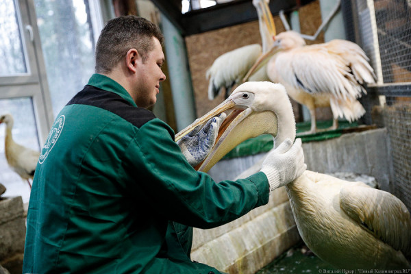 Рабочий день кипера в Калининградском зоопарке обычно начинается в восемь утра, а заканчивается… да он может и не заканчиваться, если зоотехнику приходиться забирать домой новорождённых японских макак или вьетнамских поросят, от которых «отказались» родители, и кормить их из бутылочки каждые два часа. О том, как говорящие попугаи «сквернословят» при посетителях, зачем дрессировать пеликанов и почему с животными порой договориться легче, чем с людьми, «Афише Нового Калининграда» рассказали рабочий по уходу за животными Роман Смирнов и зоотехники Надежда Лёвина и Анна Радченко.
