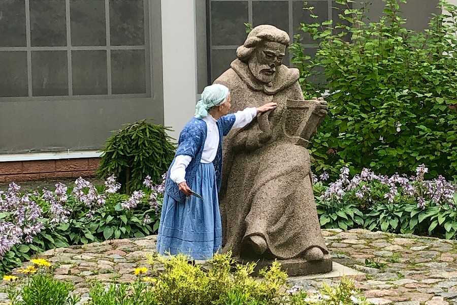 В понедельник, 12 августа, Калининградский зоопарк посетила бывшая жительница Кёнигсберга Дорелизе Путцар. Здесь установлена одна из работ её отца, скульптора Георга Фуга — памятник странствующему рыцарю-миннезингеру Вальтеру фон дер Фогельвейде. А благодаря другой, более знакомой горожанам скульптуре Фуга здание 1929 года постройки на Московском проспекте получило прозвище «дом с оленем». По просьбе «Нового Калининграда» журналист и переводчик Светлана Колбанева записала воспоминания гостьи и постаралась разобраться в истории установленного в зоосаду памятника.