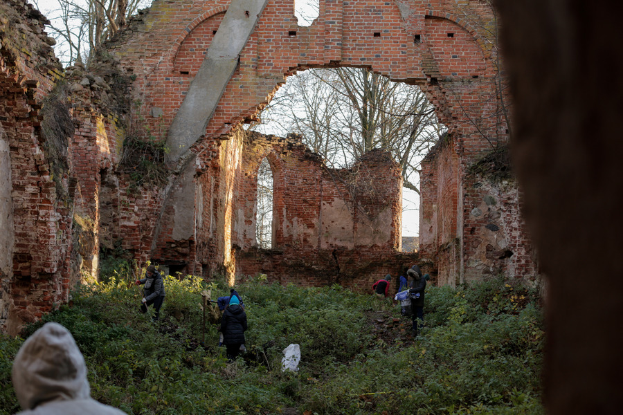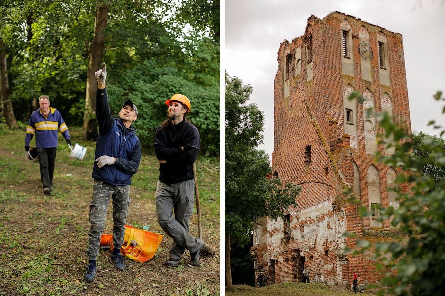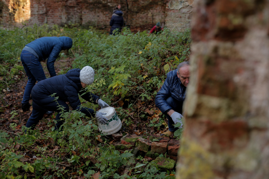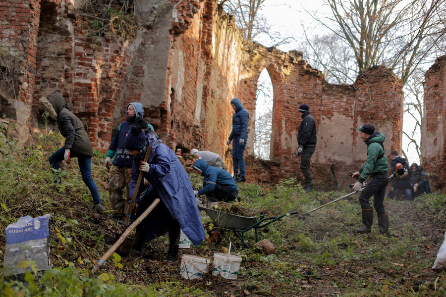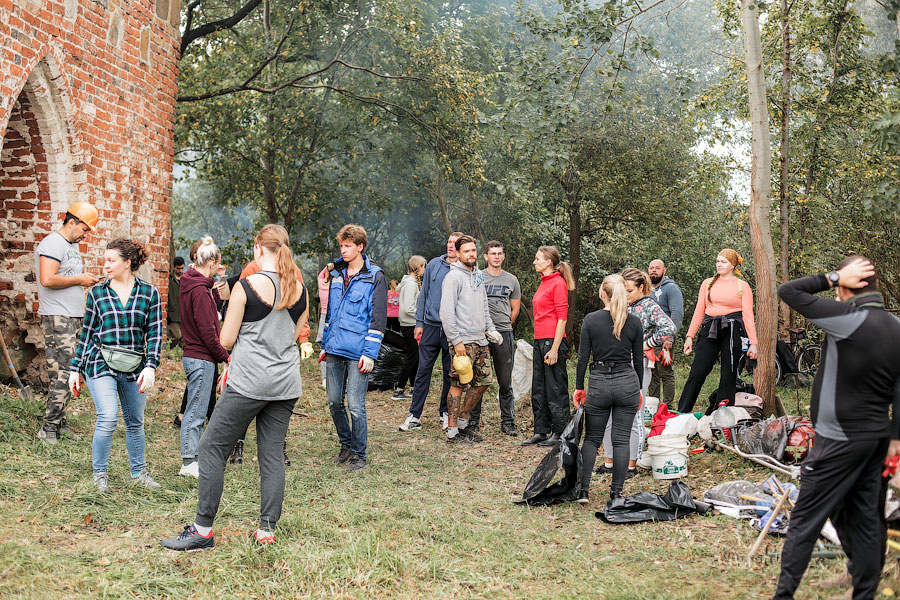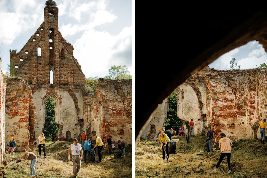 Весной прошлого года Василий Плитин решил организовать субботник с помощью краеведческого музея посёлка Владимирово, который присматривает за кирхой Тарау. Собственник памятника — Русская православная церковь — дала добро на работу, музей подключил местную администрацию, администрация — отдел ЖКХ. В итоге на субботник приехали несколько десятков человек. «Мы вместе очень круто убрали территорию, и тогда я понял, что мне не нужно постоянно напрягать знакомых, которые не „болеют“ кирхами, а важно найти заинтересованных людей. Тогда мы сможем привести в порядок не одни руины, а множество. И это действительно оказалось так. Сейчас мы делаем афишу, приезжают 50 незнакомых людей, но мы все на одной волне, и за пару часов делаем больше, чем было сделано за последние 30 лет, — рассказывает молодой человек. — В самом существовании руин я не вижу ничего плохого. Вся Римская империя, Древняя Греция — руины, но ничего, ими восхищается весь мир. Наши кирхи строил Тевтонский орден, это такие же важные памятники, несущие следы эпохи».
