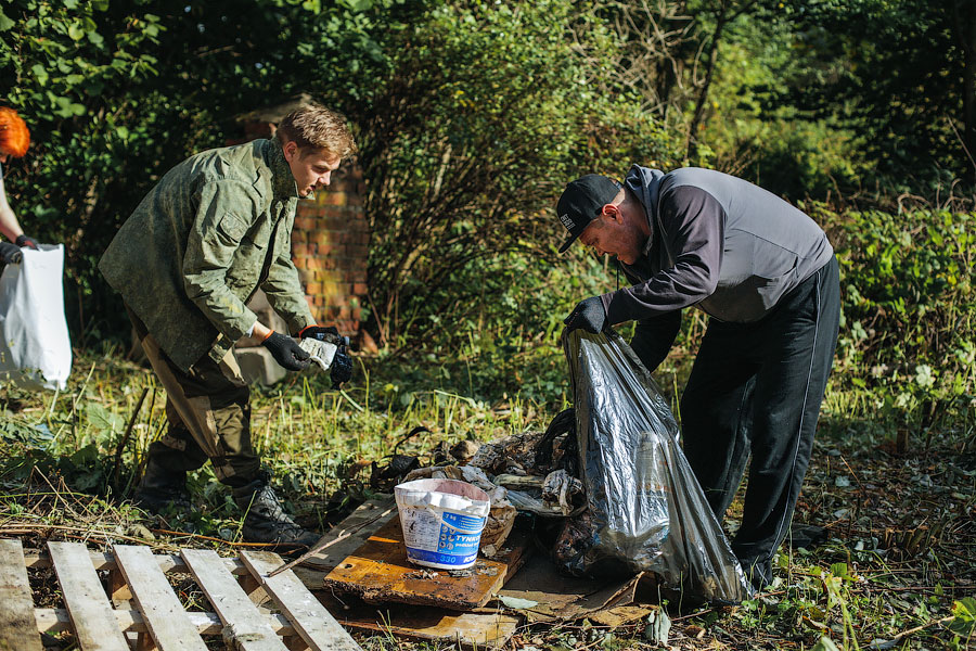 Следующие субботники Василий Плитин решил организовать с помощью движения «Прусское наследие», выступающего за сохранение довоенных памятников архитектуры. Объявления о них распространяли по социальным сетям. Много волонтёров не набиралось, но те выезды позволили выработать схему работы: получить разрешение собственника руин (с 2010 года кирхами и замками Калининградской области владеет Русская православная церковь), попросить муниципалитет помочь с вывозом мусора, проконсультироваться со Службой охраны памятников (средневековые руины — объекты культурного наследия), рассказать о правилах работы и технике безопасности волонтёрам. «Нам объяснили, что по закону мы можем проводить на руинах только так называемые экологические акции: убирать мусор, косить траву, пилить сухостой и подлесок, если диаметр ствола меньше восьми сантиметров, собирать вывалившиеся кирпичи. Любое внедрение в грунт, касание кладки — статья. Мы расчищаем траву, а внутри кирх обычно всё изрыто чёрными копателями. Было бы здорово разровнять землю, но мы не имеем на это права», — поясняет Плитин.