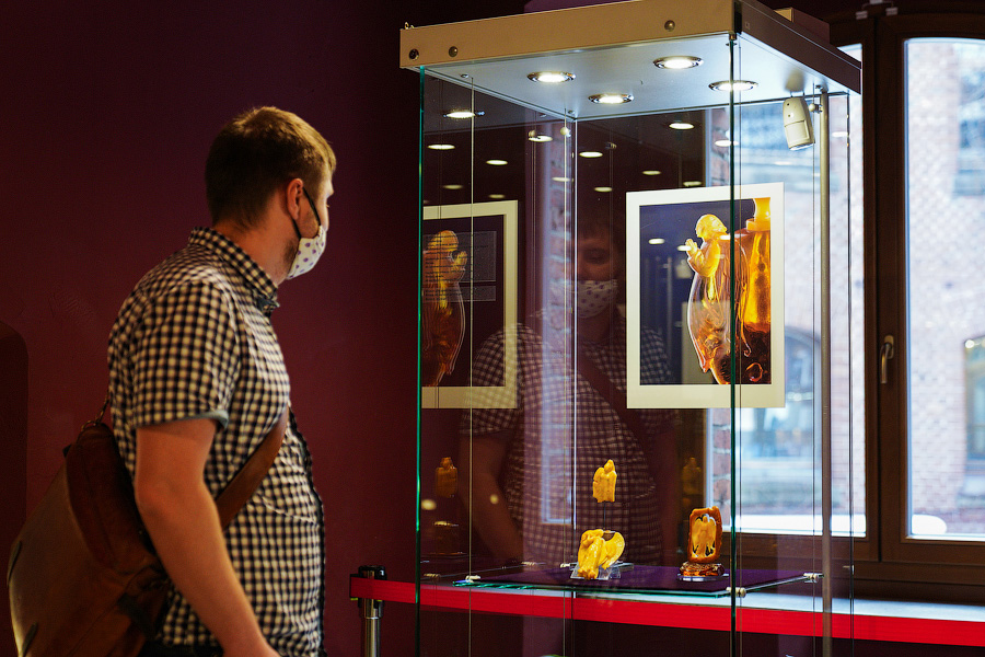 В результате удалось собрать, по сути, уникальную экспозицию, в которой представлены работы различных периодов творчества мастера, фотоснимки тех из них, судьба которых неизвестна, а также пластилиновые модели вырезанных в камне композиций — для наглядности и понимания того, как трансформировался художественный замысел автора при воплощении идеи непосредственно в янтаре, несколько из них размещено рядом с законченными произведениями.