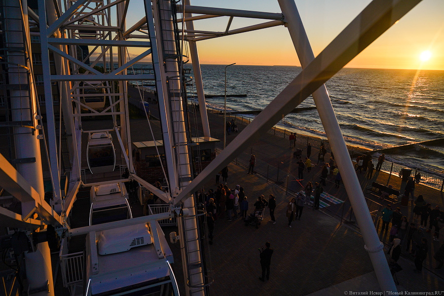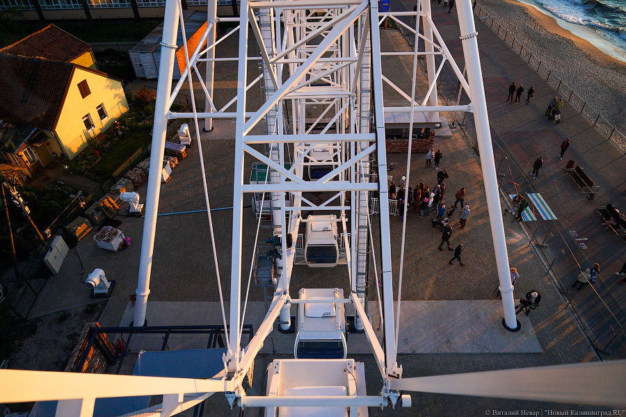 Колесо обозрения «Глаз Балтики» запустили в Зеленоградске в субботу, 29 мая. Аттракцион высотой 50 метров установили на побережье у площади «Роза ветров». По словам местных властей, рассматривались три-четыре варианта размещения колеса. В итоге выбрали локацию, с которой видно море, Куршскую косу и залив, а также открывается панорамный вид на старую часть города.