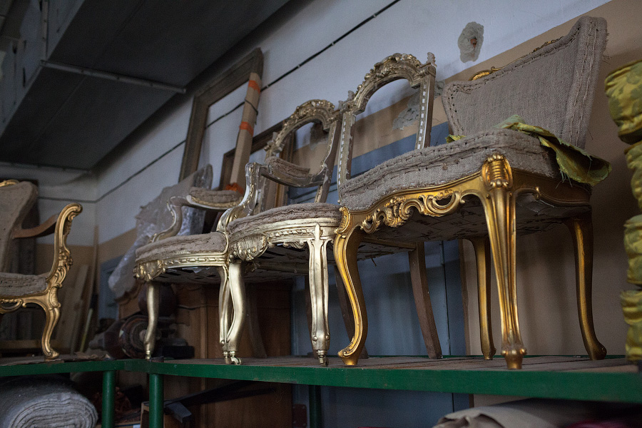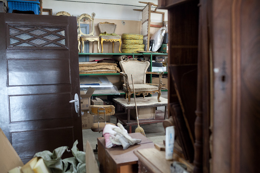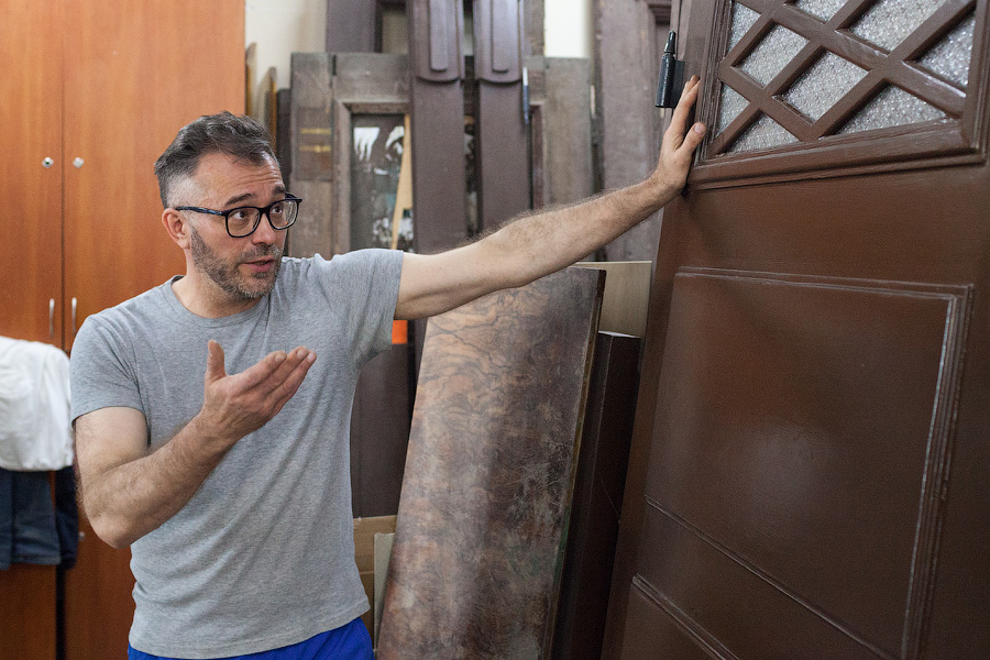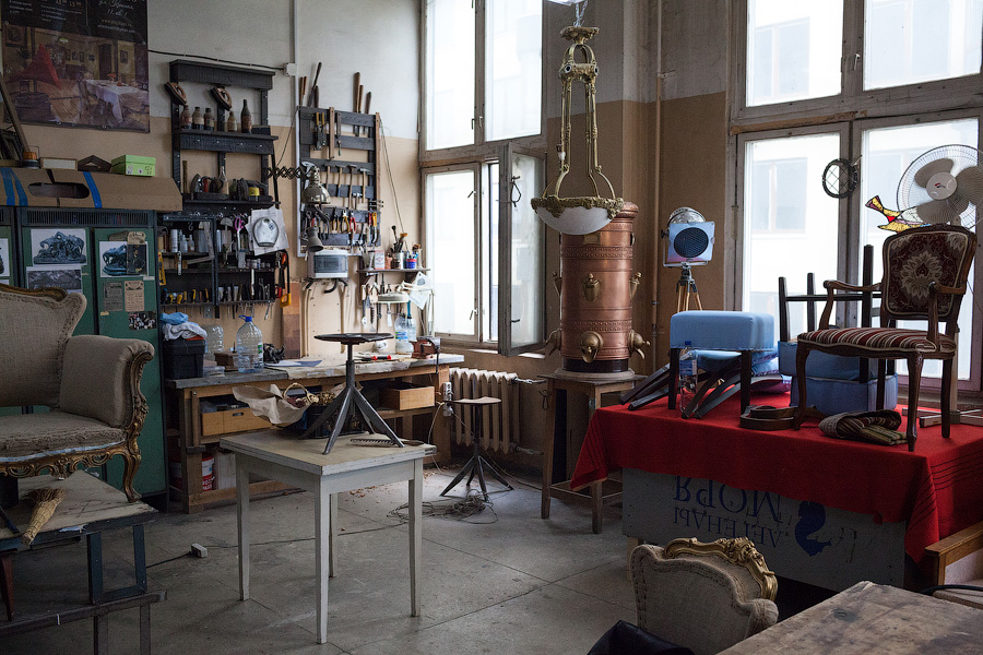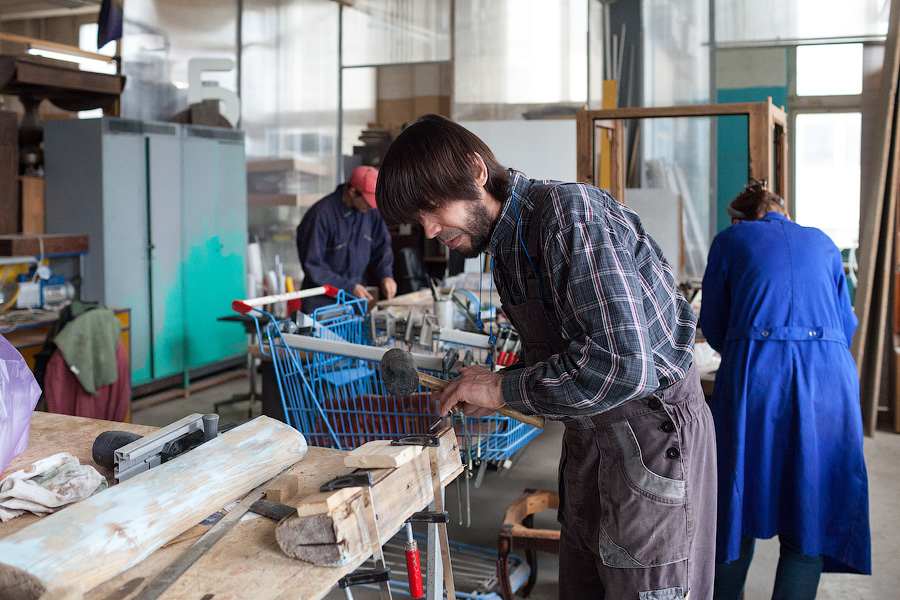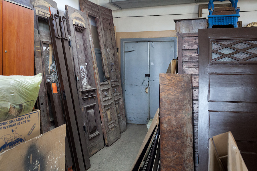В основном двери в «Петрополь» поступают от подрядчиков Фонда капитального ремонта, но некоторые образцы Владимир Семёнов находит на помойках. «Посмотрите, какая чудесная старая немецкая дверь,— реставратор показывает на выкрашенное в тёмно-коричневый цвет полотно с вставкой из свинцового стекла. — Её выкинули на улице Пугачёва, мы восстановили её для музея „Старь“ Ивана Афанасьевича Зверева. А вот эта дверь для музейного кафетерия „Густав Гроссман“ Александра Быченко. Её тоже в своё время выкинули, но краеведы подняли шум, и Александр забрал дверь себе. Зеленоградская библиотека меняла двери в своём старинном здании, где останавливался Столыпин. Руководство очень хотело найти деньги на реставрацию, но, увы, их нет. И они просто отдали нам двери, чтобы их не распилили на дрова».