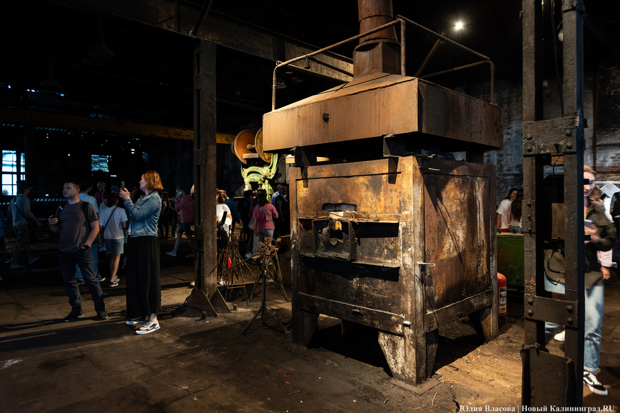 В прошлом году Вагоностроительный завод вместе с «Фридландскими воротами» и БФУ им. Канта выиграл грант Фонда Владимира Потанина размером 6,5 млн рублей. Деньги направили на маркетинговое исследование территории и превращение бывшего кузнечного цеха в экспозиционное пространство — из помещения вывезли несколько тонн мусора, подлатали крышу, отпескоструили исторические станки. Теперь кузнечный цех, по словам Андрея Ярцева, должен стать «локомотивом нового развития территории». Сегодня здесь подсветили внушительных размеров старинные станки, разместили инсталляции местных художников (самая популярная для фотографий у посетителей — груда прибитых к стене противогазов с надписью «Душно» Грачика Гущяна), организовали сцену для показа спектакля театрального объединения <НРЗБ> по воспоминаниям сотрудников вагонзавода.