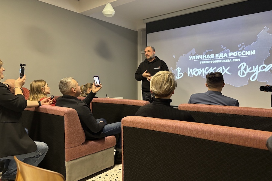 Перед началом сеанса руководитель объединения «Уличная еда России» Александр Исаев напомнил, что его командой снято девять фильмов, причем восемь из них в рамках проекта «В поисках вкуса» — о кулинарных особенностях различных регионов страны.