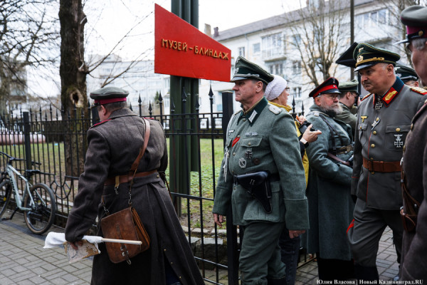 В Калининграде вечером 9 апреля провели реконструкцию капитуляции командования гарнизона Кёнигсберге. Рядом с музеем «Бункер» калининградские реконструкторы развернули свою экспозицию и попытались восстановить события 81-летней давности, когда в центре города еще продолжались бои, а в бункере, выдержавшем несколько прямых попаданий бомб, укрывалось немецкое командование во главе с генералом Отто Ляшем.