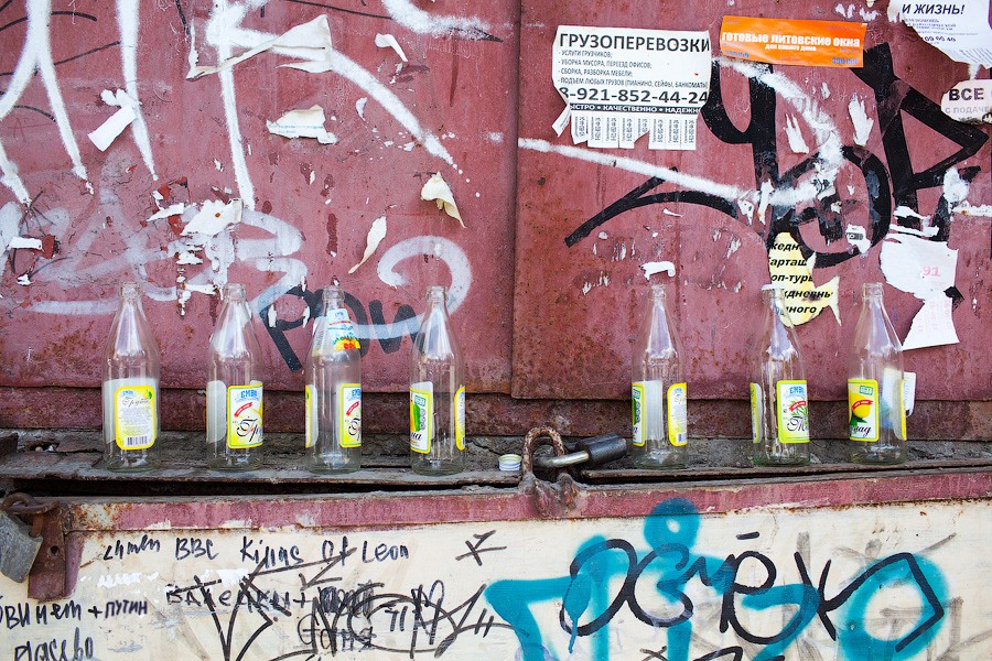 По соответствующему запросу «Гугл» выдаёт четыре пункта приёма стеклотары (на Карла Маркса, на Суворова, Судостроительной и ещё один без адреса), а также крайне бесполезное текстовое вступление из пяти абзацев, рассказывающее, что, мол, из стекла в стране делают линзы для кинескопов, интерьерные витражи «и это далеко не всё». Звоним. По одному из адресов, оказывается, бутылки теперь уже не берут, по другому — временно не работают с частными лицами, по третьему не дозваниваемся. Больше других запоминается такой звонок: усталая женщина спрашивает, кажется, далеко не в первый раз, где мы взяли этот номер, и получает на него точный ответ: «На сайте „Гринписа“». «Гринпис», кстати, к четырём добавляет ещё несколько адресов пунктов приёма, которые, впрочем, тоже не работают. Мы решаем идти до конца и отправляемся в поисках стеклоприёмников на улицы города.