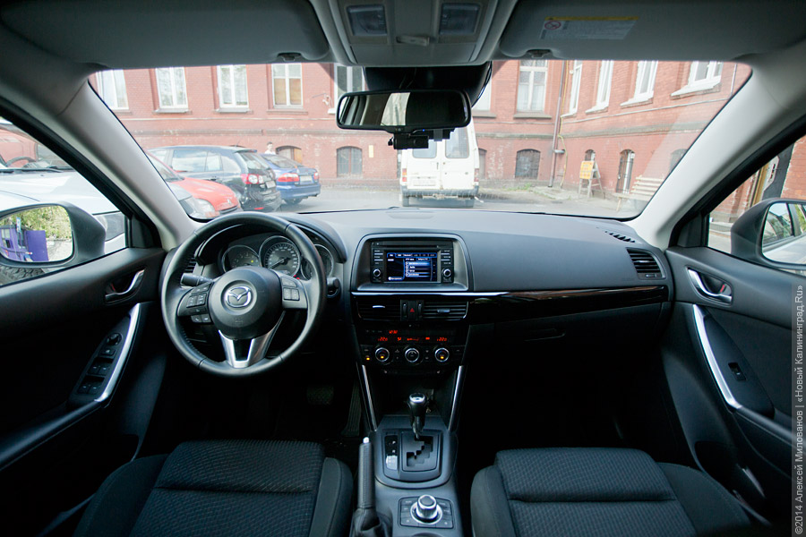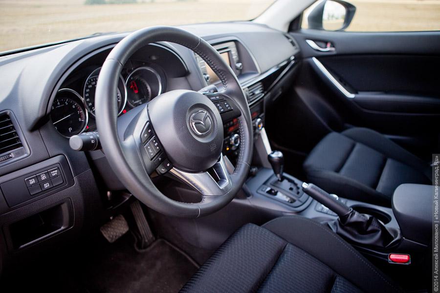 Интерьер CX-5 — едва ли не лучший среди всех автомобилей Mazda. Приятные на ощупь материалы, выверенная эргономика и отличное качество сборки, характерные скорее для чистокровного «европейца», нежели для японского автомобиля. Мало? Добавьте к этому удобный трехспицевой руль, джойстик на центральной консоли для управления мультимедиа-системой во время движения (кстати, отлично придумано: не нужно отвлекаться от дороги, чтобы нажать что-то на тач-скрине) и великолепно читаемую приборную панель, выполненную без ненужных прикрас, в классическом стиле.