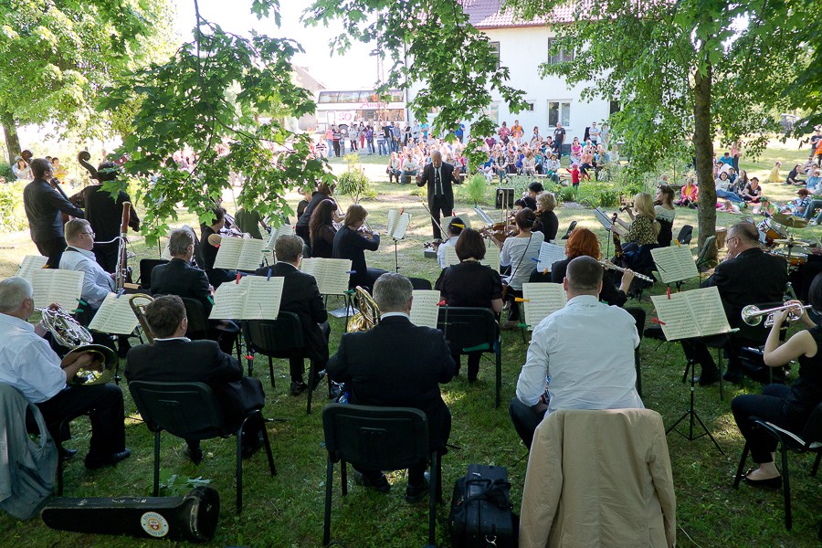 С точки зрения сложности трассы, второй день путешествия должен был получиться более трудным, чем первый. Больше расстояние (89 километров против 84) и сложнее путь (восточная часть области стоит на холмах). С пониманием этого, а также с твёрдой установкой успеть к 16:00 на концерт Калининградского симфонического оркестра в посёлке Краснолесье мы стартовали рано утром. Ещё и 9 часов не было. Погода оставалась на нашей стороне, сил по-прежнему было хоть отбавляй. По пути в Озёрск (54 километра) трижды останавливались — вешали на автобусных остановках полки, чтобы жители отдалённых мест могли обмениваться книгами, а те, кто едут мимо, оставляли свою литературу. Уличная книжная мебель теперь есть в поселениях Вишнёво и в Крылово Правдинского района, Мальцево — Озёрского. Жители населённых пунктов обещали за полками присматривать.