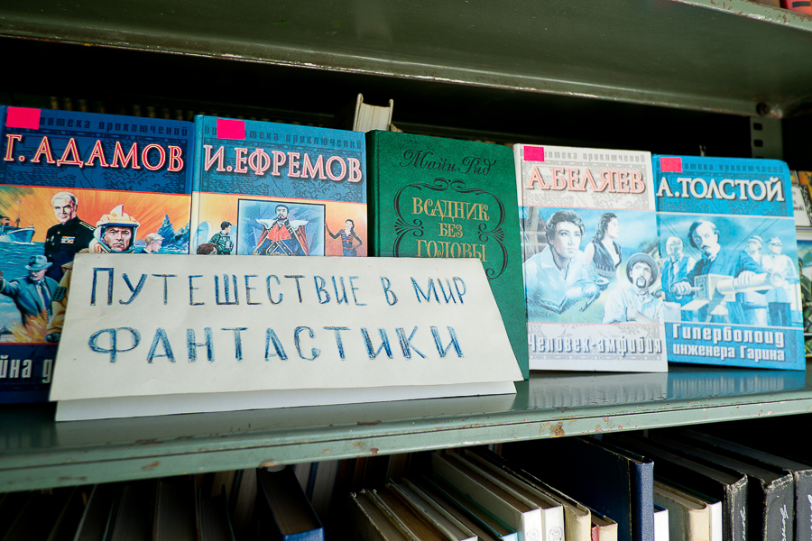 Правдинской библиотеке повезло куда меньше Гвардейской — ей пока остается только мечтать о свежем ремонте, время здесь будто бы остановилось лет 20 назад — настенные часы символично встали.