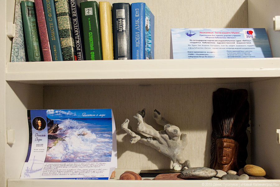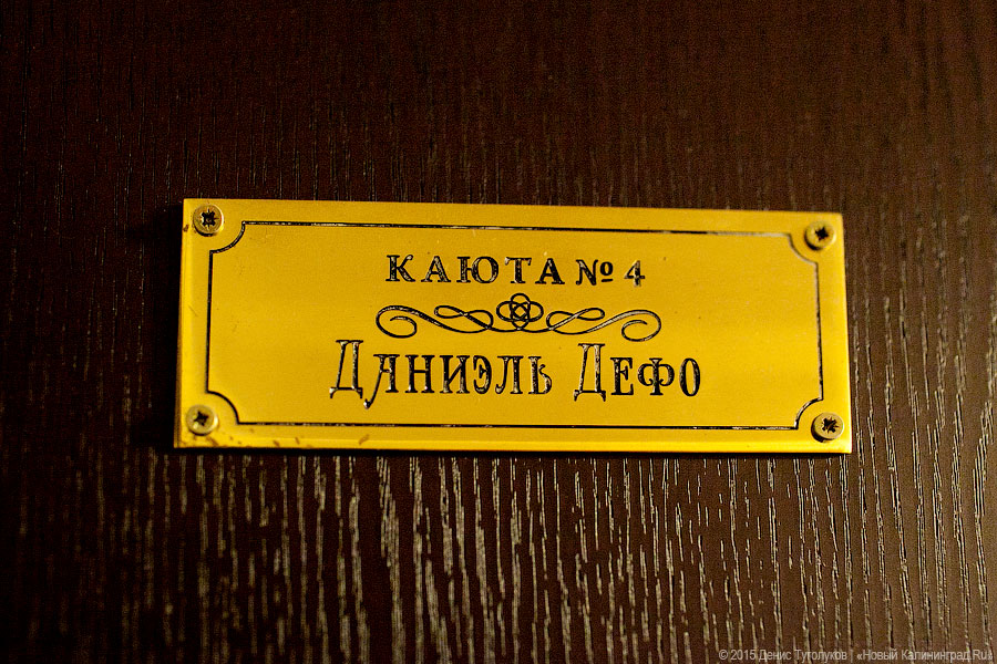 Всего кают шесть. В каюте № 1, судя по табличке, живет Герман Мелвилл, в каюте № 2 — Гомер (кстати, почему ему достался все же второй номер, или первый — полулюкс?), в каюте № 3 — Александр Беляев. В четвертой каюте живут Даниэль Дэфо и я, в пятом — Эрнест Хэмингуэй и моя соседка (Денис уточняет: «Молоденькая»), в шестой — Александр Грин. Еще есть библиотека и морской зал, оба опечатаны. Говорят, что обычно они открыты, но