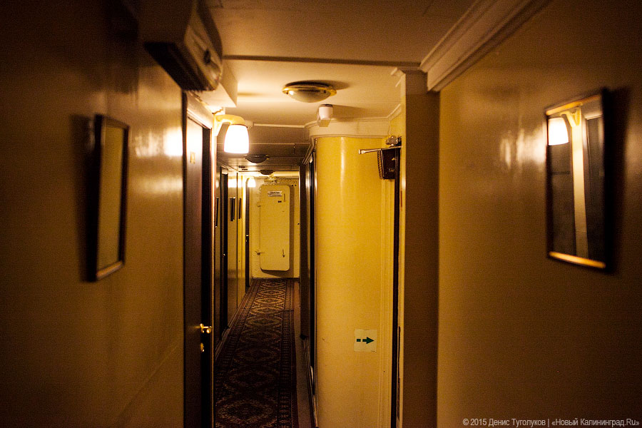 В правилах посещения отеля я бы запретила употреблять напитки различной степени крепости не только на территории отеля, но и вне ее: в целях безопасности, разумеется. Ступеньки вниз очень узкие, а лестница крутая. Спуск преодолен. Правда, с непривычки я сворачиваю не в тот коридор, с минуту недоумеваю, почему с дверей кают исчезли латунные таблички с именами писателей и остались просто номера. Хожу