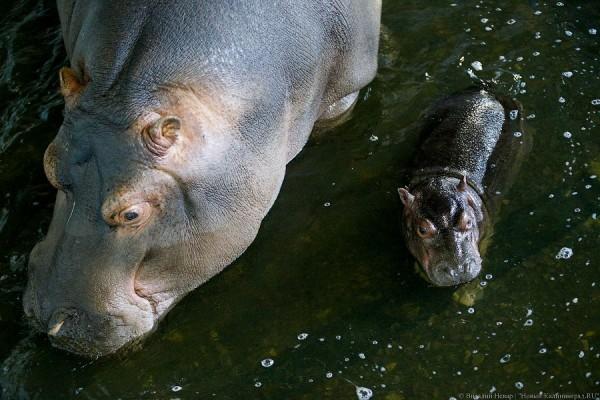 Внимательные посетители зимнего павильона бегемотов Калининградского зоопарка в течение последних двух недель могли заметить, что обитателей стало больше. Бегемотиха Миля и бегемот Гляссик обзавелись потомством: на свет появился 40-килограммовый бегемотик. Его пол пока неизвестен: мать при попытке приблизиться к детёнышу закрывает его от лишнего внимания. Первую в жизни юного бегемота фотосессию провёл корреспондент «Нового Калининграда.Ru».