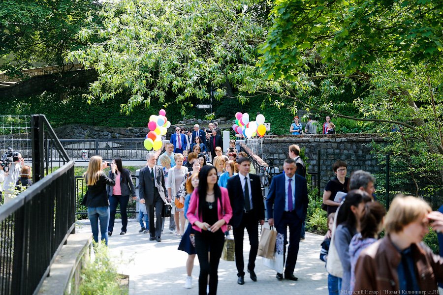 Калининградский зоопарк начал отмечать свое 120-летие с открытия реконструированного пешеходного моста. Поздравить юбиляра и оценить итоги ремонта в пятницу пришло руководство региона и города, а также директора зоопарков-партнеров нашего зоосада из других городов. Губернатор Николай Цуканов отметил, что «все мы выросли в зоопарке», а затем вручил директору учреждения Светлане Соколовой медаль «За заслуги перед Калининградской областью». Глава города Александр Ярошук в свою очередь пообещал и в дальнейшем изыскивать в бюджете средства на реконструкцию зоопарка. По празднующему юбилей зоосаду прогулялся и фотокорреспондент «Нового Калининграда.Ru».