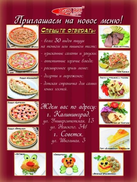 Пиццерия «Мама Мия» рассказала «Ресторанам Нового Калининграда.Ru» о новом меню, где, помимо излюбленных блюд итальянской кухни (пицца, паста), можно оценить яркий вкус изысканных салатов и закусок, насладиться горячими блюдами, отведать ароматные стейки и побаловать себя удивительными десертами.