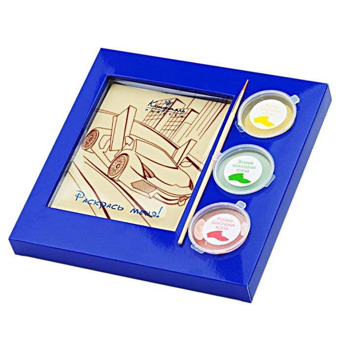 Состав — набор шоколада: полотно из белого шоколада, шоколадные краски — все абсолютно безопасно!