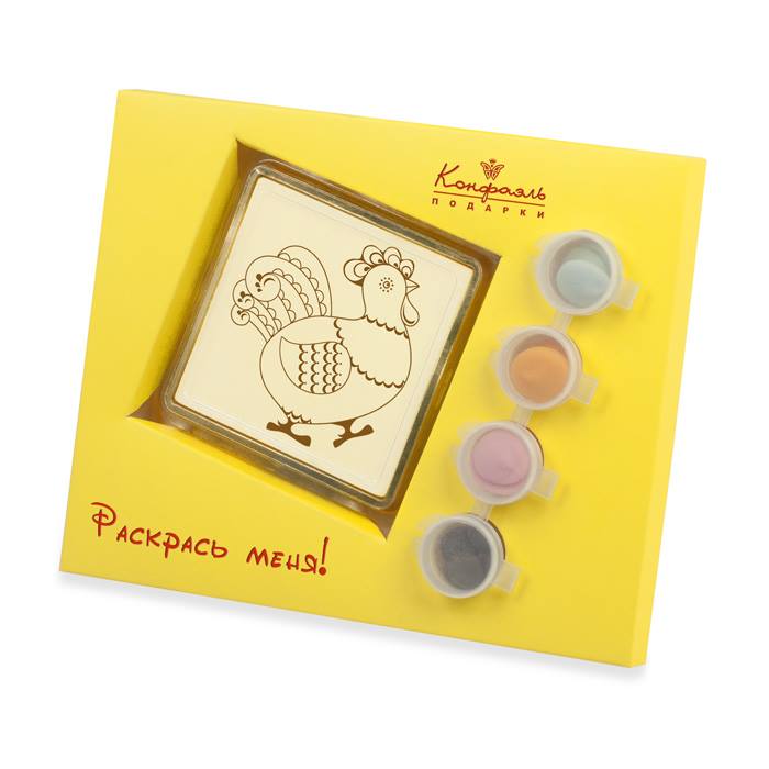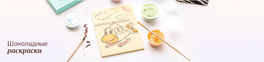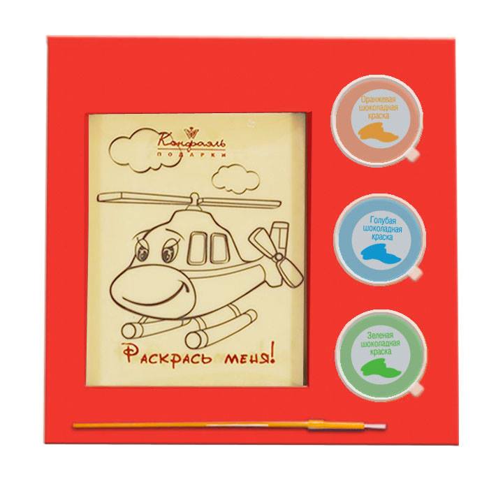 Сейчас у нас есть съедобные детские шоколадные раскраски. Малышам будет очень интересно разукрашивать мультяшный вертолет, динозаврика, петушка и др. героев сказок. Предложите ребенку старательно разукрасить картинку, а потом расскажите, что это шоколадная раскраска, а значит, ее можно преспокойно съесть в качестве награды за старание!
