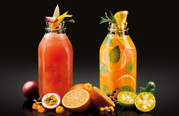 Морошка-Каламанси» из пюре мускусного лайма каламанси, пюре морошки, пюре облепихи, базилика, сиропа бузины и содовой; - микс «