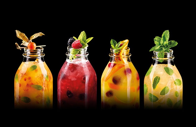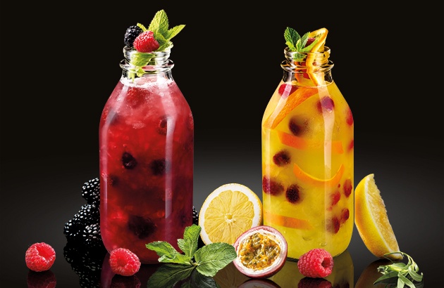Для вашего удобства мы подаем лимонады в эффектных и удобных бокалах (400 мл) и бутылках (900 мл), заказанных специально по такому поводу.
