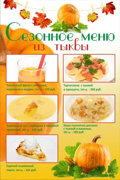 Кроме того, с 1 ноября по 15 декабря в кафе "Бон-Бон" и кафе "Мировой кофе" действует "Сезонное меню из тыквы".
