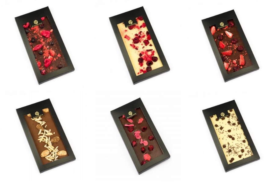 Шоколадные плитки в индивидуальной дизайнерской упаковке — это плитки высококачественного черного, молочного и белого шоколада с возможными добавками ценных растительных приправ и ягод, высушенных методом лиофильной сушки.