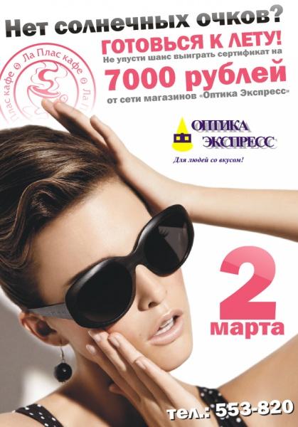 Каждый гость, пришедший в очках, автоматически становится участником розыгрыша сертификата на 7 000 рублей от сети магазинов