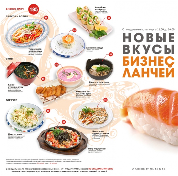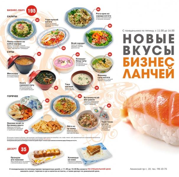 В кафе «Якитория» на Ленинском пр-т, 18, полноценный «Бизнес ланч» за 195 руб.