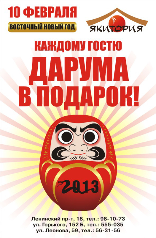 Как загадать желания и как забрать «Дарума» домой, Вы узнаете 10 февраля в кафе «Якитория».