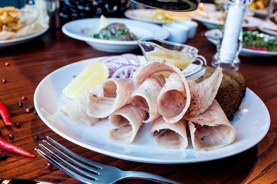 Закуской номер один он назвал строганину из пеламиды. «[Среди туристов] пользуются популярностью блюда, которые невозможно больше нигде купить или приготовить. И, конечно номер один здесь наша строганина из пеламиды. Существует примерно миллион рецептов. У каждого калининградца, наверное, свой рецепт, как правильно делать строганину из пеламиды. Процесс — подача в слайсах, приготовление, кто-то ест слайсами, кто-то делает совершенно другую консистенцию, близкую к паштету, потом выкладывание на гренку. Это всегда с пивом или с водкой. Само потребление строганины из пеламиды — это как мероприятие, некий ритуал».