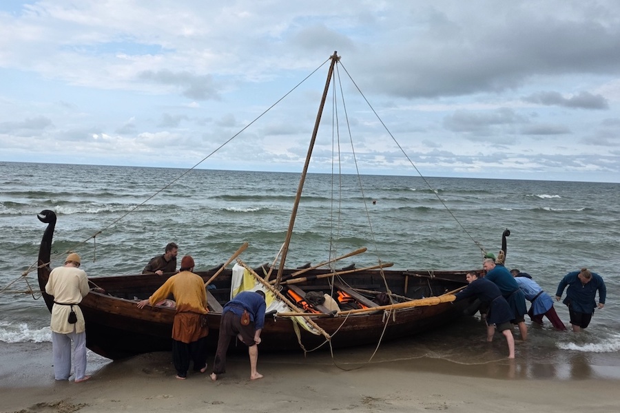 К выходу в море судно готовили три года, два года «пробовали силы» на воде. «Пришлось поднять борта, чтобы противостоять морской волне. И вот в День города Зеленоградска это получилось. Самое сложное было выйти за береговую волну. Все умения и знания, полученные за эти годы пригодились», — отметили в центре. Представители «Каупа» добавили, что для поселения это очень важный момент, поскольку впервые в России полностью воссозданная ладья IX века смогла выйти в Балтику.