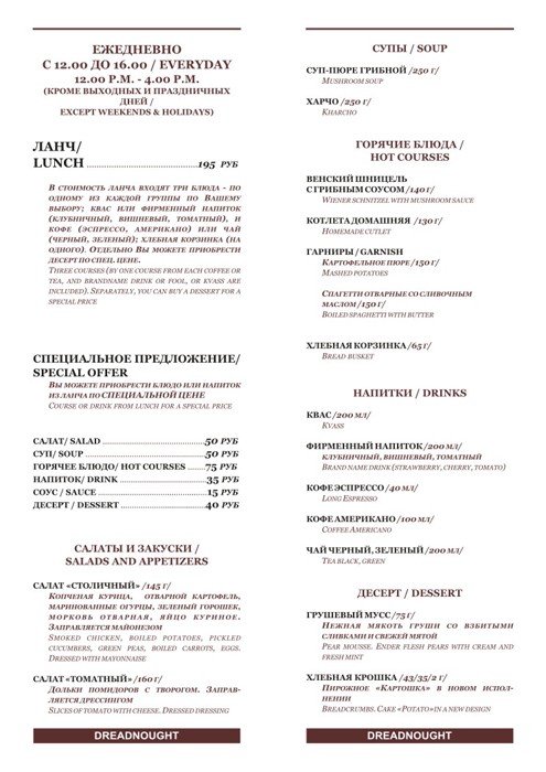 С 23 сентября в ресторане «Дредноут» новые ланчи!