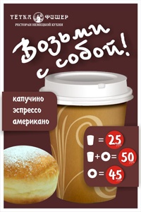 Кофе+пончик — 50 рублей.