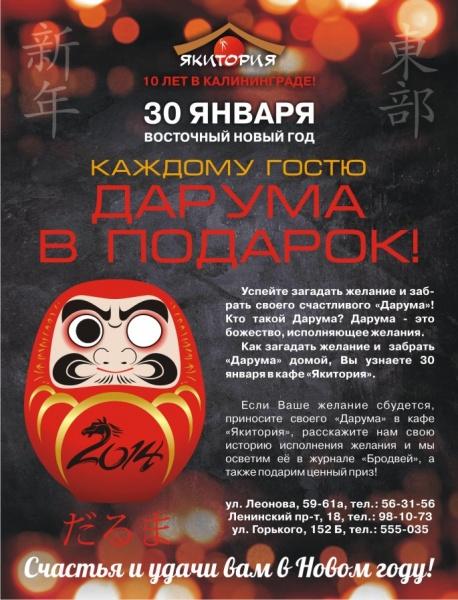 Как загадать желание и забрать даруму домой, вы узнаете 30 января в кафе «Якитория».
