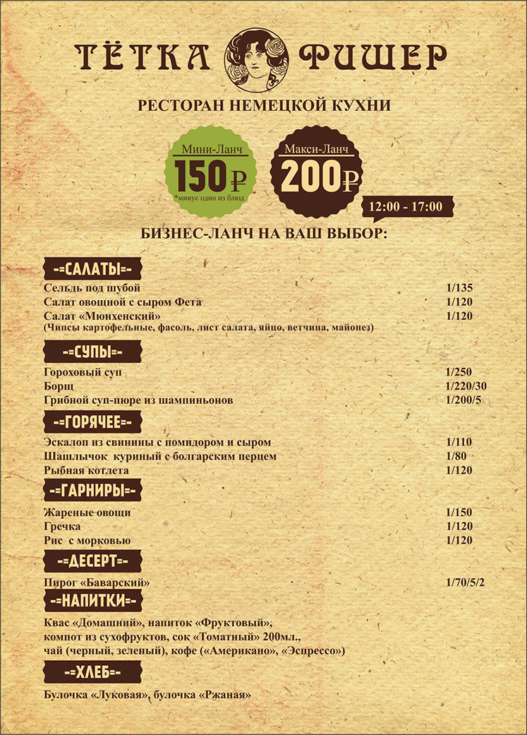 Ресторан немецкой кухни «Тетка Фишер» приглашает на новый душевный бизнес-ланч.