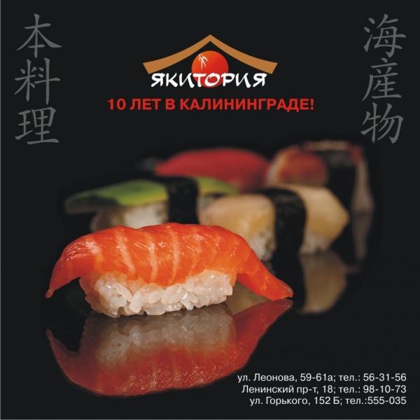Ровно десять лет назад в Калининграде на ул. Леонова открылось первое кафе известной сети «Якитория». Именно здесь калининградцы впервые взяли в руки бамбуковые палочки, налили в соусник соевый соус и попробовали блюда японской кухни. Многие остались навсегда: где еще найдешь аутентичные изыски по демократичным ценам, да еще и в шаговой доступности от дома или работы? Три кафе сети, оформленные в едином фирменном стиле, намеренно строились в спальных районах, а также в центре города и оснащались дополнительными опциями вроде кинозала («Якитория» на Леонова), караоке («Якитория» на Ленинском проспекте) или детской комнаты («Якитория» на Горького). Все для того, чтобы удовлетворить пожелания любимого клиента. Целых десять лет жизни «Якитория» преследовала именно эту задачу. Что же дальше?