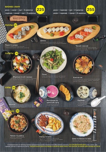 — вы можете заказывать отдельно по спец. цене ролл, салат, суп или горячее из ланча;