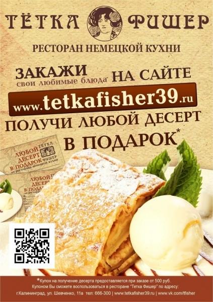 Ресторан «Тетка Фишер» дарит десерт в подарок