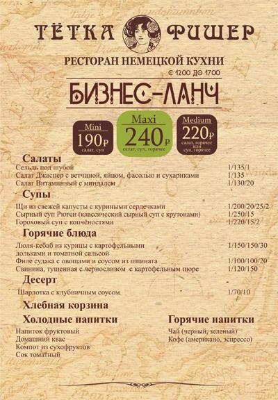 Ресторан немецкой кухни «Тетка Фишер» приглашает на душевный бизнес-ланч.