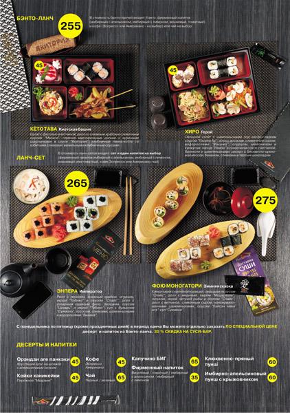 — вы можете заказывать отдельно по спец. цене ролл, салат, суп или горячее из ланча;