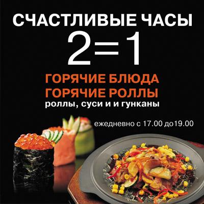 Ура! Сеть кафе «Якитория» расширяет ассортимент блюд в «Счастливые часы». Теперь каждый день с 17:00 до 19:00 вы можете наслаждаться не только роллами по акции «2 блюда по цене 1», но и горячими роллами, горячими блюдами. Это то, что нужно зябкой зимой для поддержания жизненной силы!