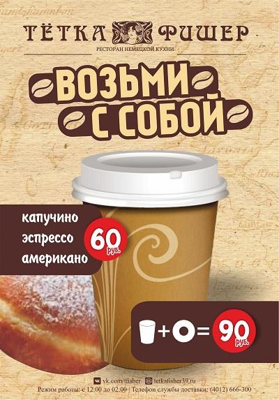 В ресторане немецкой кухни «Тетка Фишер» проходит акция — возьми кофе с собой
